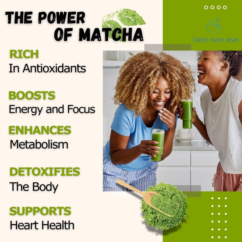 Organic Sweet Matcha Green Tea Powder - Cafe Style Blend by Cherie Sweet Heart - 16oz, Vegan & Gluten-Free, Rich in Antioxidants, Perfect for Lattes, Smoothies & Baking