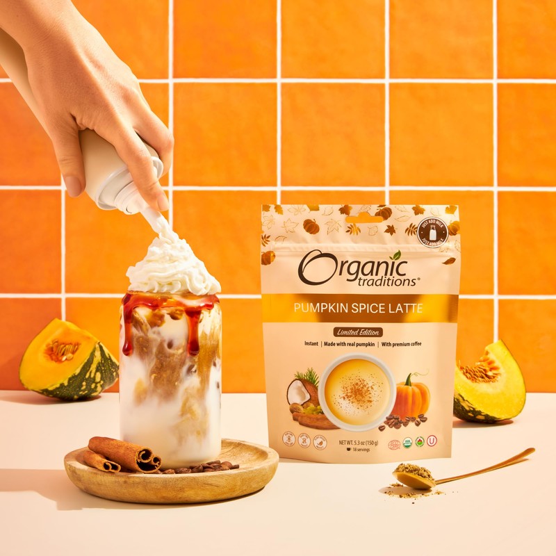 Organic Traditions Pumpkin Spice Latte Instant Coffee Dairy Free PSL Pumpkin Spice Coffee Blend 150g/5.3oz Bag