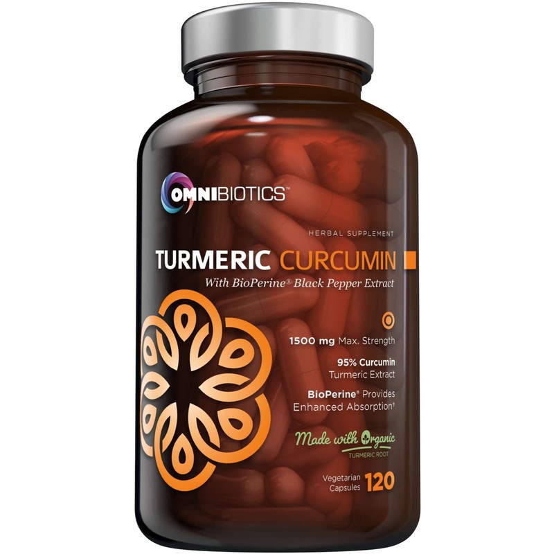 Organic Turmeric Curcumin Supplement 1500mg with BioPerine | 95% Standardized Curcuminoid Extract & Organic Root Powder with Piperine Black Pepper Fruit (10mg), 120 Vegetarian Capsules by OmniBiotics