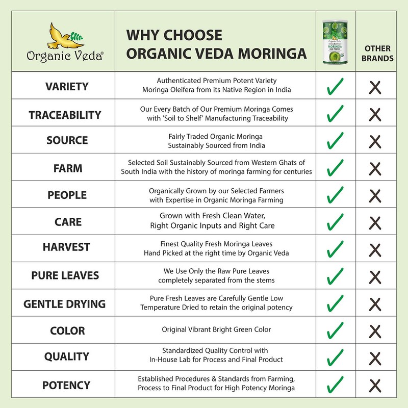 - Orgánico, recolectada a mano y naturalmente procesados por un estándar ISO certificado empresa. propio crecido Moringa y autoadhesivo procesados, a diferencia de otros comerciantes y cambiar varias manos, por lo tanto, que tomar toda la responsabilidad