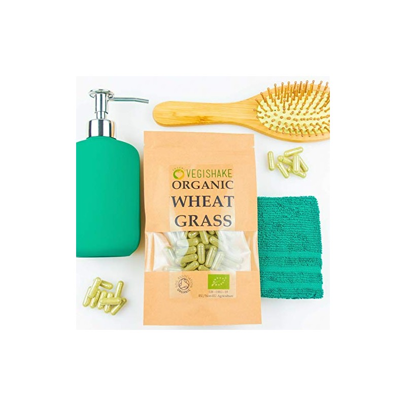 Organic Wheat Grass powder, HPMC Capsule (Vegan Halal Kosher).