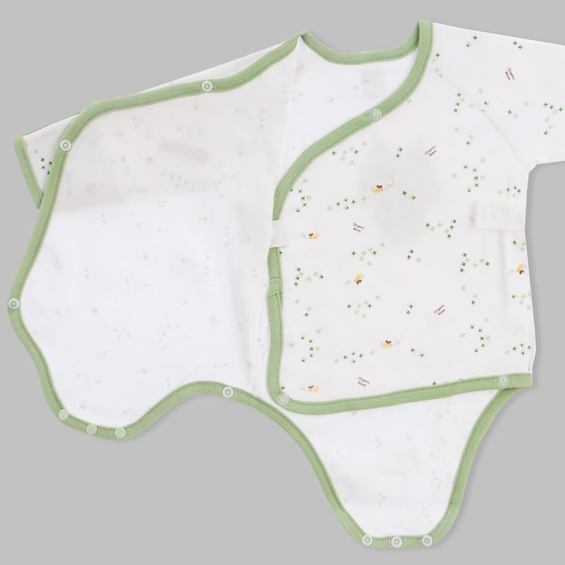 organicboom 100% Organic Cotton Side Snap Kimono Onesie Bodysuit With Mitten Cuffs (HoneyBee, 3-6M)