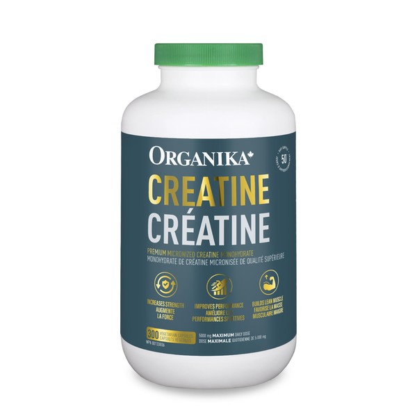 Organika Canadian-Made Creatine Capsules- Pure Micronized Creatine Monohydrate - Helps Build Lean Muscle, Increase Strength, and Improved Recovery and Performance for Men and Women- 300vcaps
