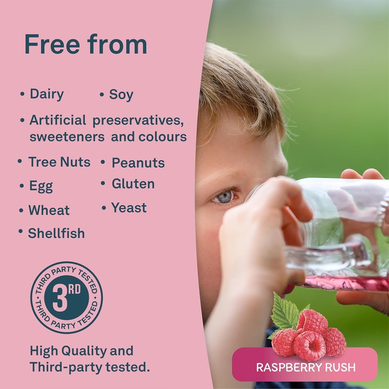 Organika Kids Electrolyte Powder – Raspberry Rush | Sugar-Free Hydration with Vitamin C & Prebiotics