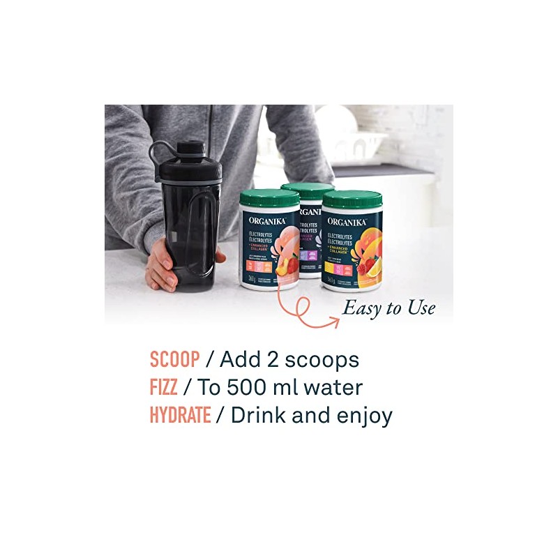 Organika Organika Canadian-Made Electrolytes + Enhanced Collagen - Strawberry Peach Flavour - Sugar-Free Hydration | 5g Protein + 100% of Daily Vitamin C - 360g, 30 Servings