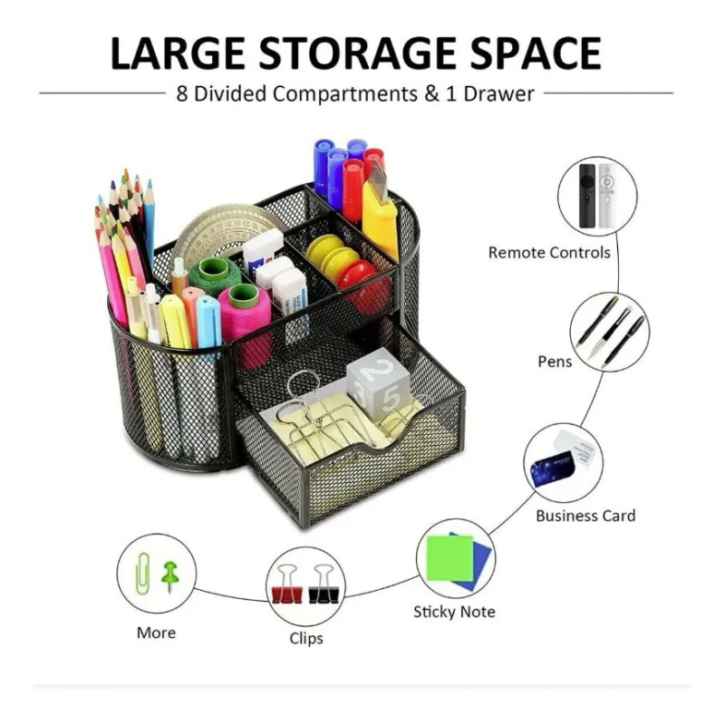 Dile adiós al desorden y hola a la productividad con nuestro fabuloso Organizador de Escritorio con 8 Compartimentos y 1 Cajón. 🤩 Imagina un espacio de trabajo donde cada bolígrafo, cada clip y cada nota adhesiva tienen su lugar designado. No más búsquedas frenéticas ni montañas de papeles que te impiden concentrarte. Este no es simplemente un organizador, ¡es tu aliado secreto para conquistar el día! 🦸♀️