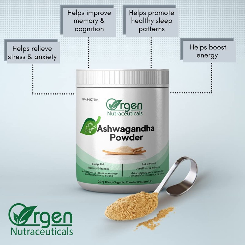 Orgen Nutraceuticals Organic Ashwagandha Powder 227g Helps relieve stress, aids sleep, supports memory and cognitive health
