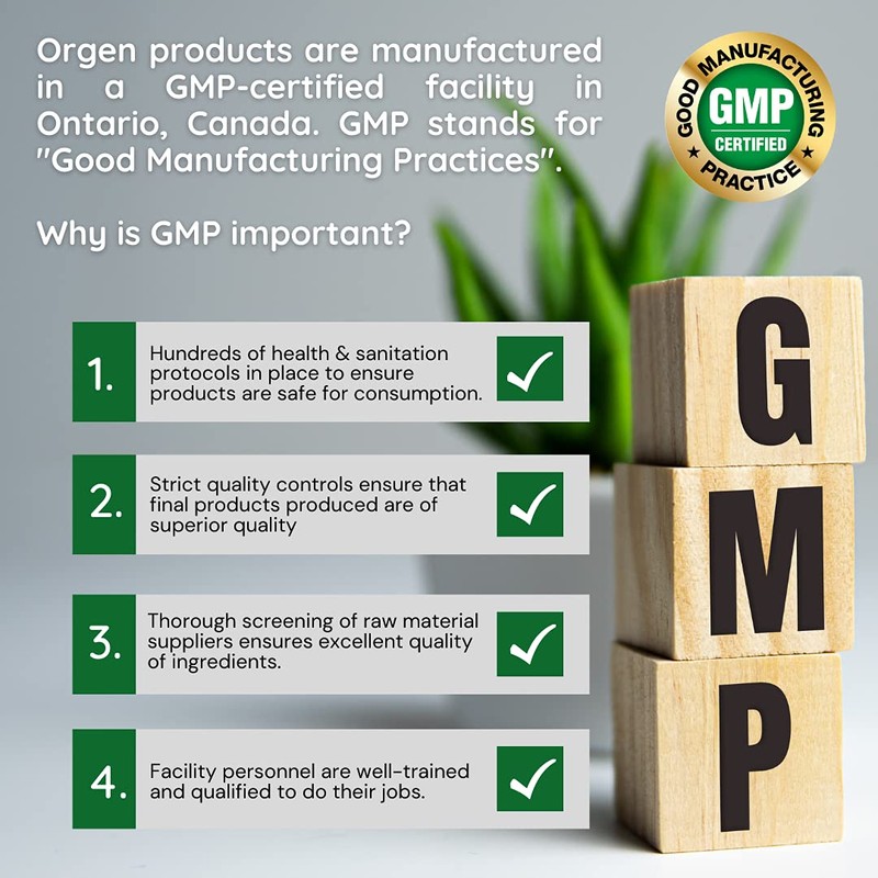 - GMP CERTIFIED: Orgen Ashwagandha is made in Canada in a GMP-certified facility. It contains no GMOs and is both vegan and Halal certified.