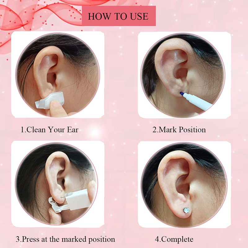 - Easy to use: You can even pierce your ears yourself! It's as simple as using a stapler. Just press it quickly and firmly. Note Since this is a self-destructing "one-time" use kit, please do not "try" or "test" it by pressing it.