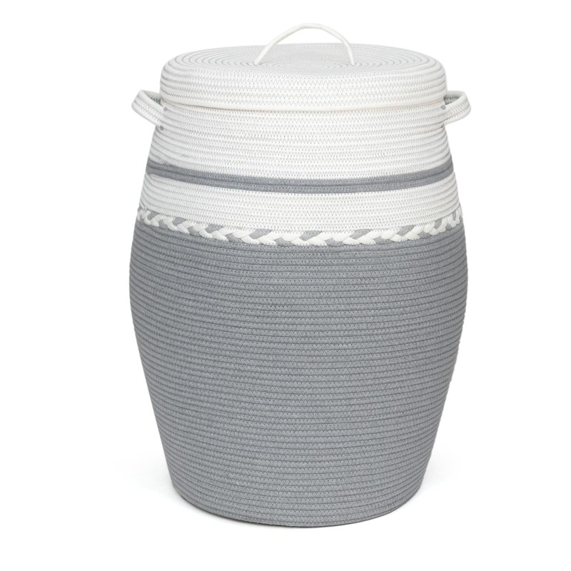 ORGMASTER Large Collapsible Laundry Baskets, Laundry Hamper with Lid, Cotton Rope Basket Storage Organizer Bin for Blanket, Comforter, Cushions, Clothes, Pillows, 19.3x25.6 Inch, White/Gray