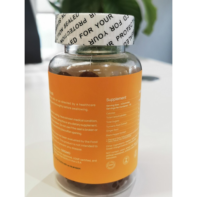 - PREMIUM QUALITY GINGER GUMMIES - We brand is made in a GMP-approved facility, and every aspect of manufacturing process has been strictly examined, including our laboratory/testing method. All turmeric supplement gummies are heat protected with a sand coating that decreases the chance of melting, congealing or sticking.