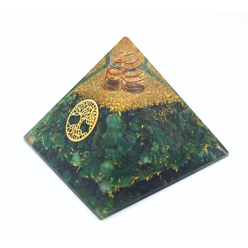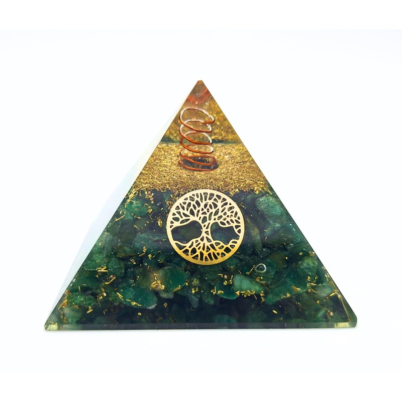 Orgonite Pyramid with Real Gemstones Energy Harmonisation with Healing Stones Copper Spiral Tree of Life Energy Protection Happiness Harmony (Green Aventurine (Green) 6 x 6 cm)