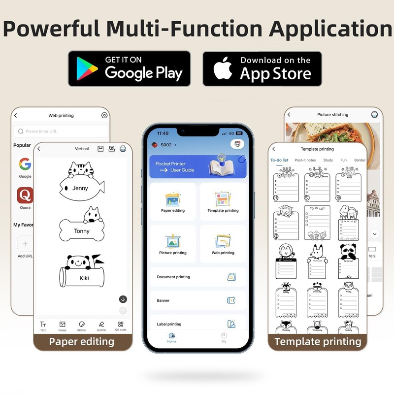 - Wide Applications: The mini sticker printer is ideal for printing study notes, anatomy flashcards, graphic diagrams for math, chemistry, geography, and physics, as well as organizing excerpts efficiently; It is also suitable for home, office, DIY projects, and commercial use