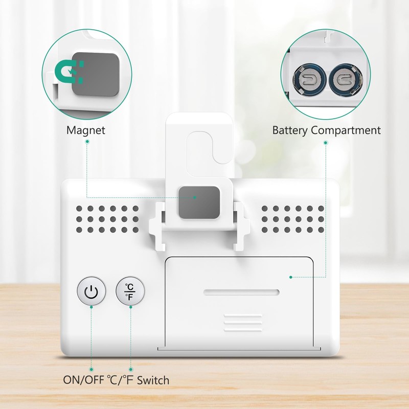 - 3 Mounting Options: The fridge thermometer digital offers 3 installation methods, hook-mounted, magnetic, or stand-mounted. You can attach it to the fridge door with the magnet, hang it with the hook, or flip the hook to use it as a stand for tabletop placement
