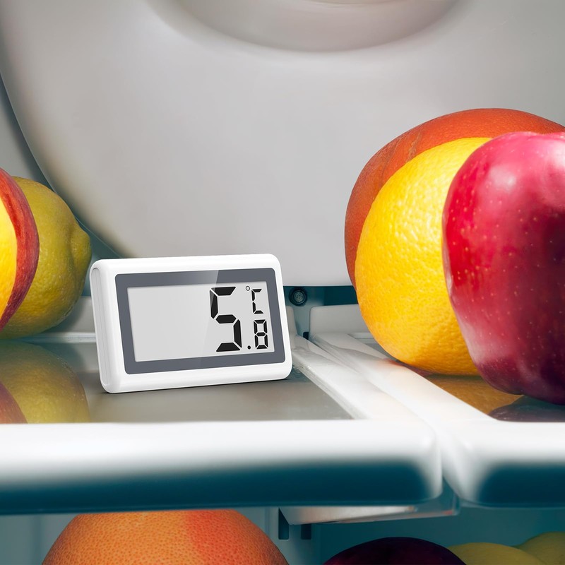 - User-Friendly Design: Featuring an LCD screen with large digits, the fridge freezer thermometer is easy to read even from a distance. It has a simple setup with only 2 buttons: one for power (press and hold for 3 seconds to turn off, short press to turn on) and the other to toggle between °C/°F