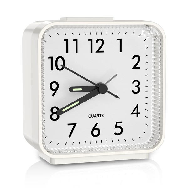 ORIA - Reloj despertador analógico, pequeño sin tictac, movimiento de cuarzo de 3 pulgadas, con luz, función de repetición, aumento de sonido de alarma, reloj despertador simple para ancianos, adolescentes, blanco