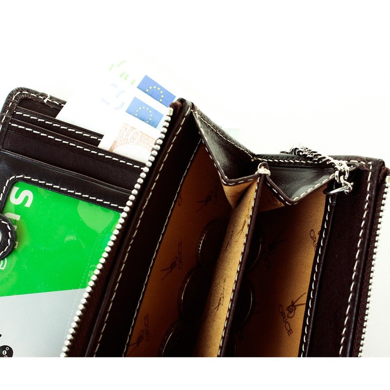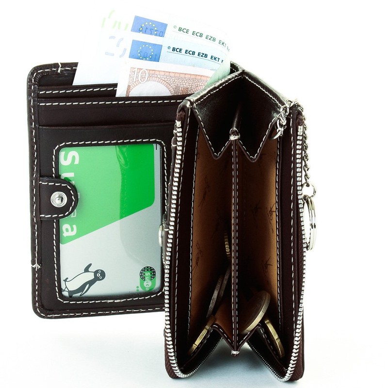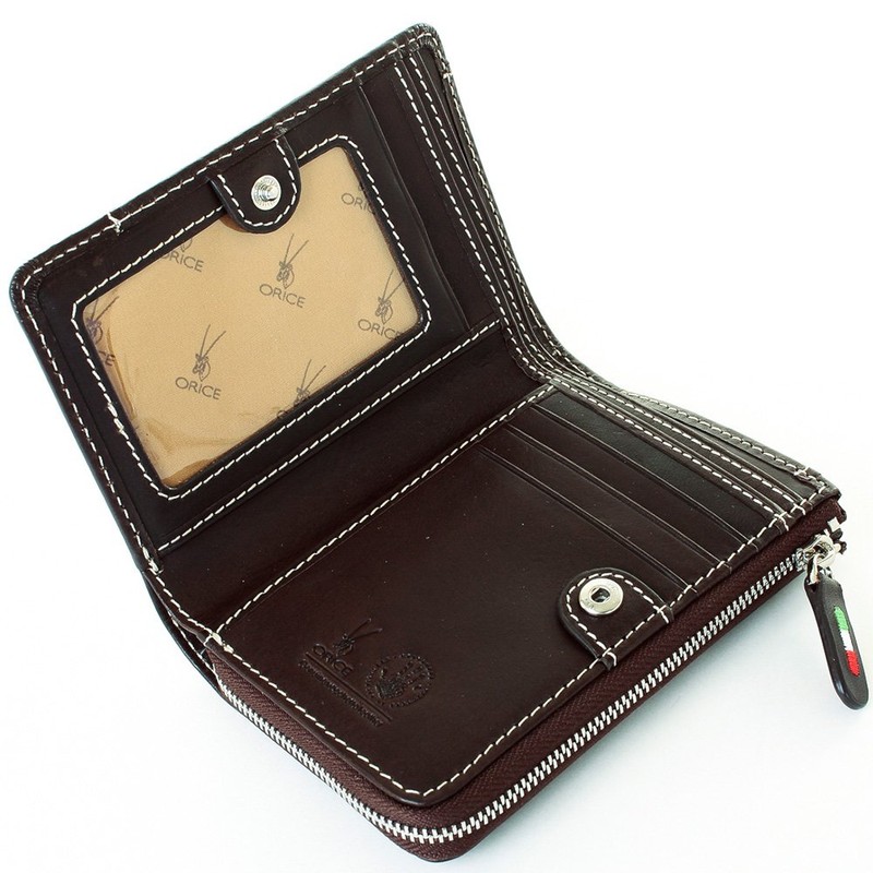 - Features: The coin case is made with an L-shaped zipper that is accordion-style. Comes with dividers for easy classification. Coin case interior features key chain and storage pocket Clear card pocket on left side of wallet, 3 card pockets on right side Bill compartment allows you to separate bills