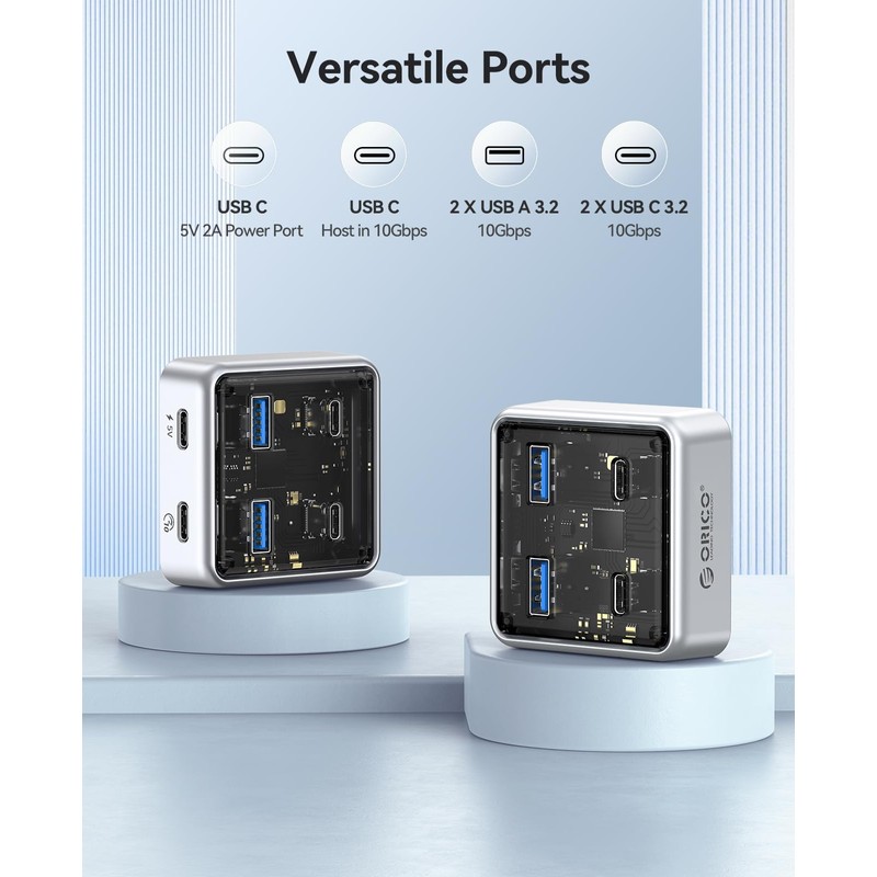 ORICO 10Gbps USB-C Hub, 4-Port Alloy USB Splitter with 2 USB-A & 2 USB-C Ports, High-Speed Data Extender for Laptops, PCs, Desktops, and More (3.28Ft)