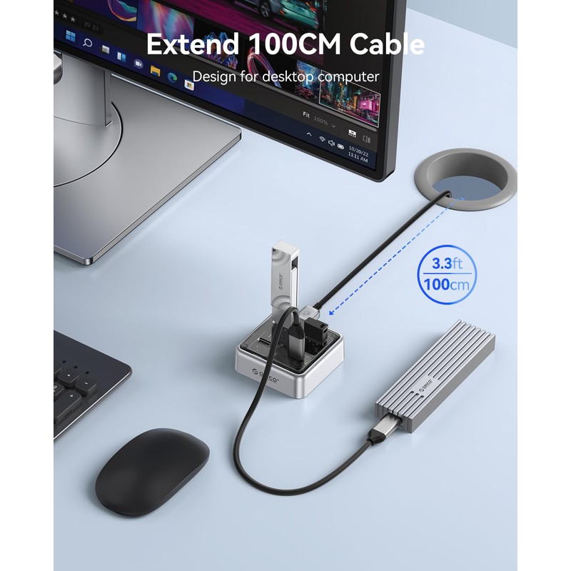 Expansive Device Connectivity: Equipped with 2 USB-A and 2 USB-C ports, this USB extension hub enables seamless connection of multiple devices such as flash drives, mice, and smartphones simultaneously. It’s designed to cater to various use cases in office work, entertainment, or daily tasks, solving the issue of limited port availability.