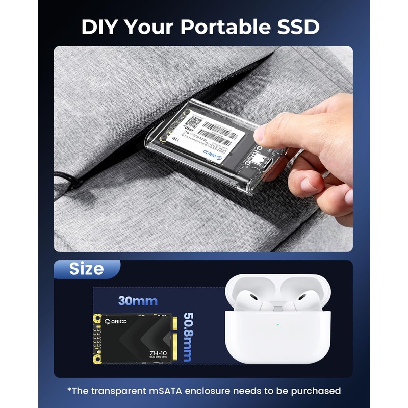 - 【A do-it-yourself portable SSD】Combine the msata SSD with the transparent ORICO mSATA hard disk enclosure (TC10) to create a compact and stylish PSSD. Build your own mobile database