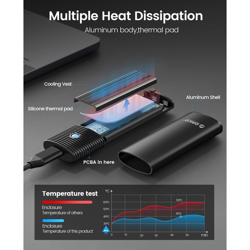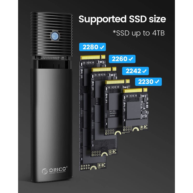 ORICO M.2 NVMe SATA SSD Enclosure Adapter Tool-Free, USB C 3.2 Gen 2 10Gbps NVMe, 5Gbps NGFF SATA PCIe M-Key(B+M Key) 2230/2242/2260/2280, Aluminum External M2 Reader Support UASP Trim- PWDM2-BK