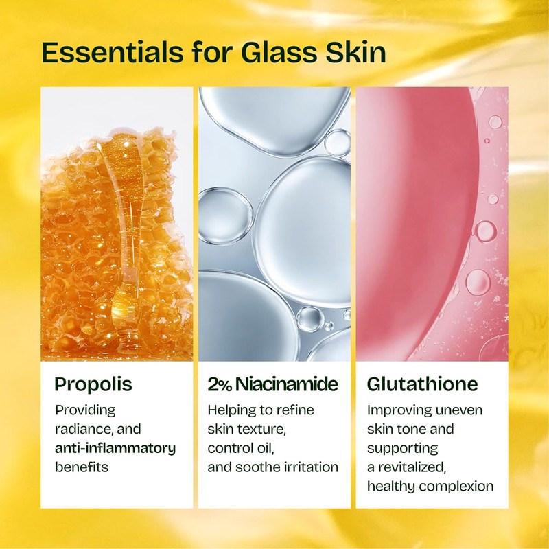 - [Propolis & Glutathione] Propolis and L-Glutathione liposome to enhance skin vitality and support overall skin tone for a radiant complexion.