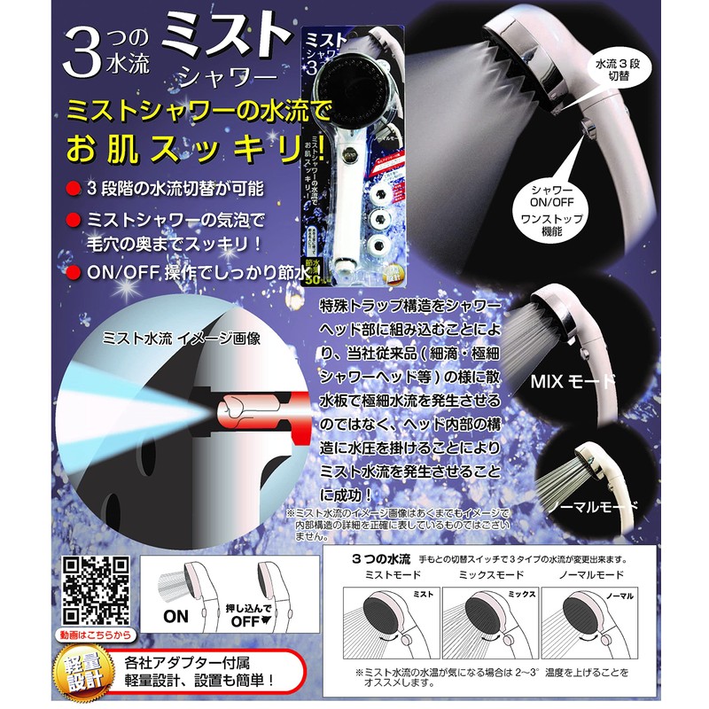 - Mist, Normal, and Mix. 3 levels of water flow