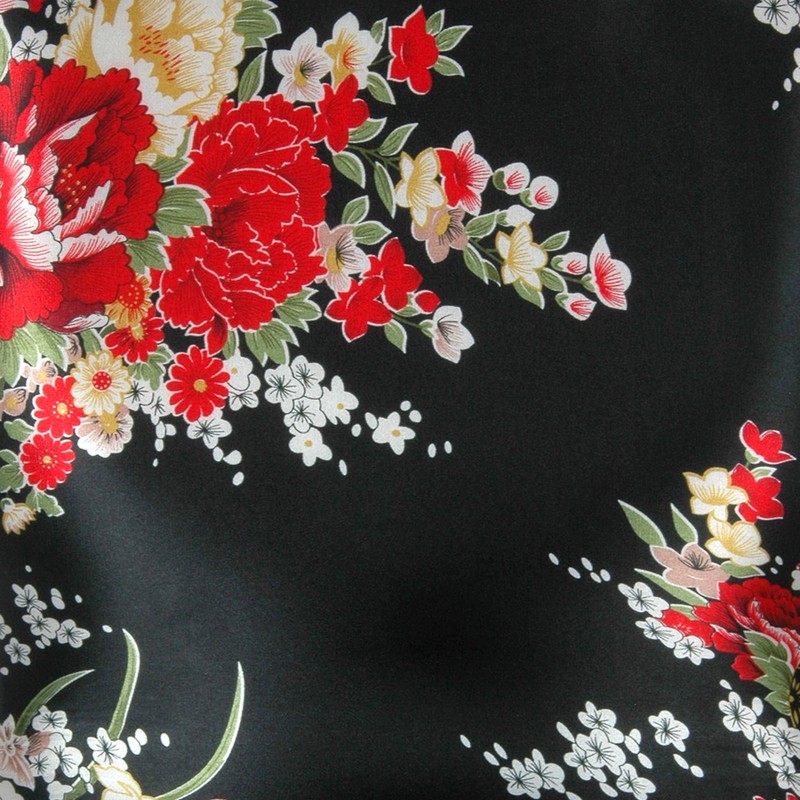 Oriental Furniture Tatami Meditation Backrest Chair - Black & Red Hibiscus