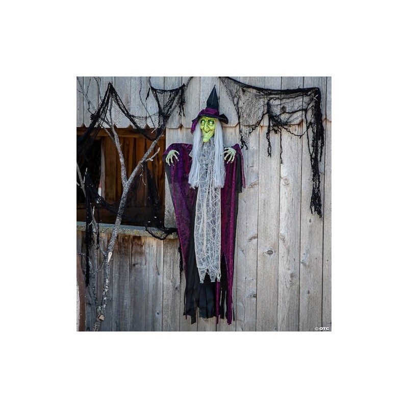 Oriental Trading Halloween Express 4 Ft. Hanging Witch with Green Eyes Animated Prop Halloween Decoration