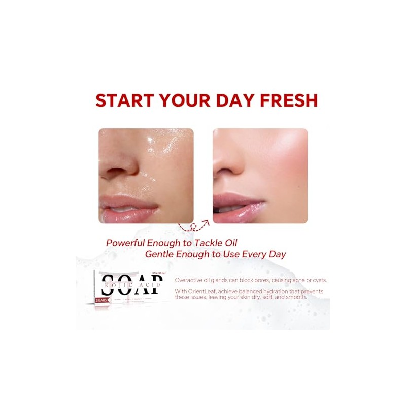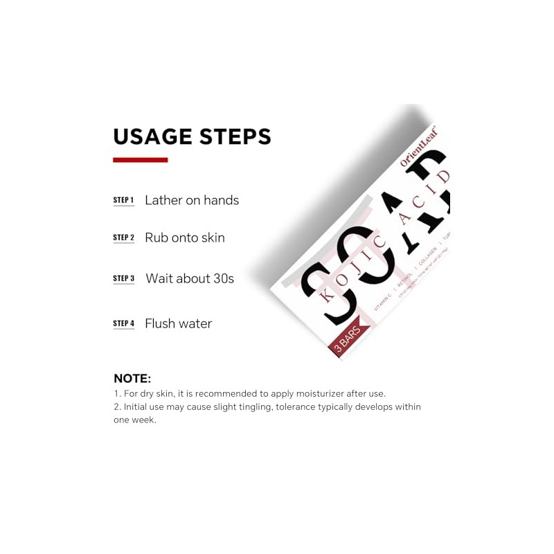- OrientLeaf Kojic Acid Soap: Effectively brightens skin and helps you avoid skin troubles. Gentle for face and body