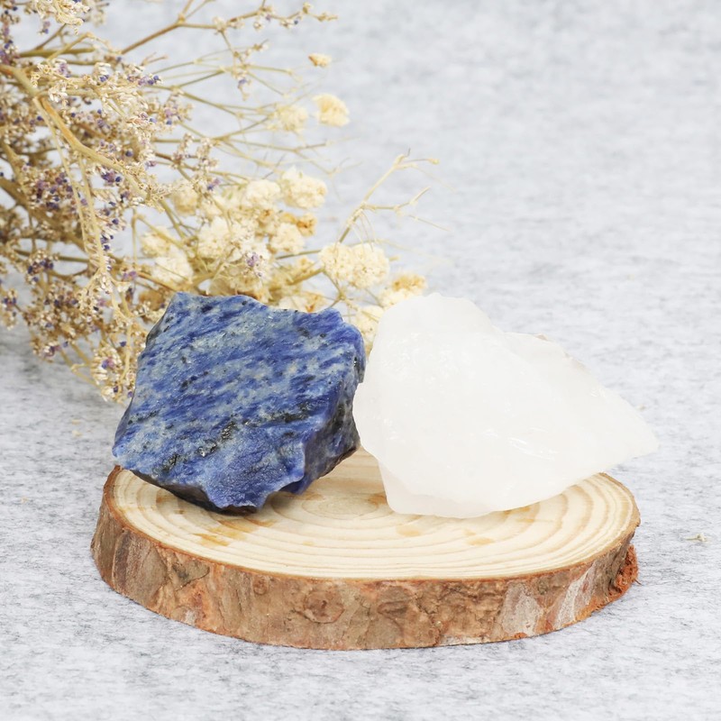 - WEIGHT&SIZE---- The Sodalite Crystal is about 1.6″- 2.1″/PC, and the Clear Quartz Crystal is about 1.8″- 2.7″ /PC. Each stone is irregular, unpolished and rough.