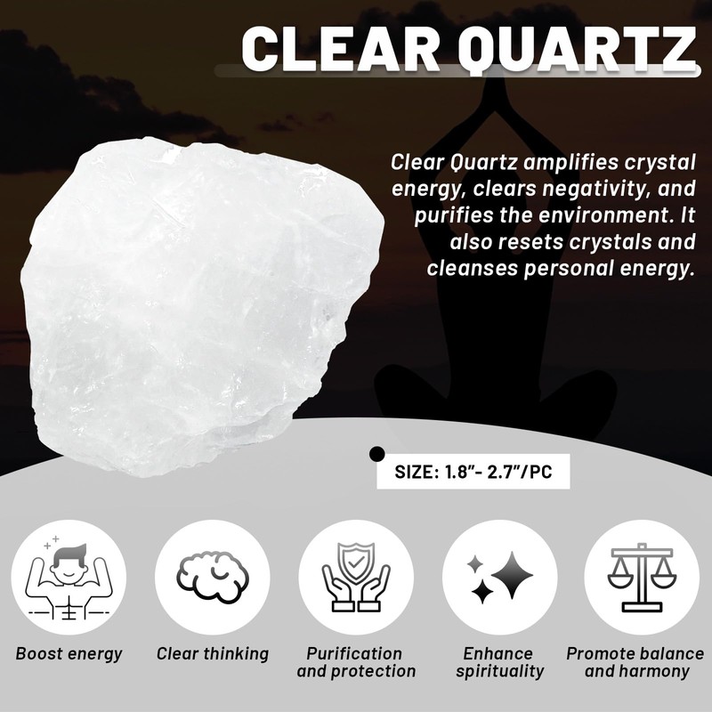 - CLEAR QUARTZ---- Clear Quartz can cleanse and purify the negative energy of other crystals or objects, helping to restore their original energy state. It has the ability to amplify energy and is often used to enhance the effects of other crystals. For example, using Clear Quartz alongside other crystals can amplify their effects or enhance the healing process.