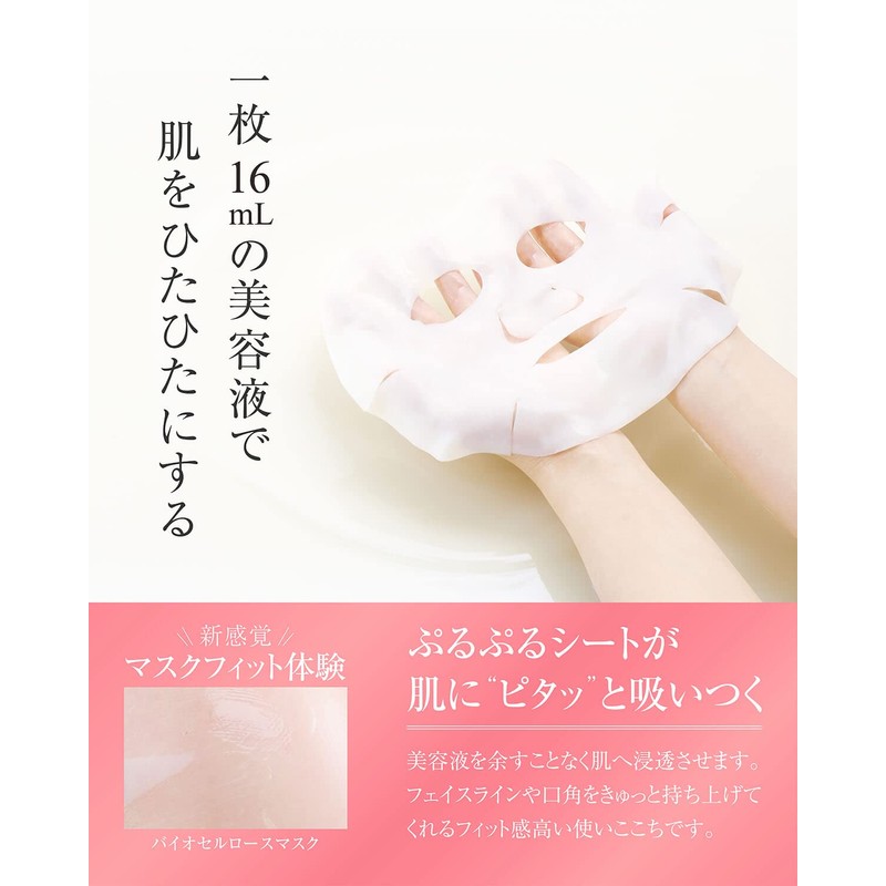 - ✅【マシュマロ肌 / "新感覚"マスクフィット体験】ぷるぷる素材のバイオセルロースマスク。フェイスラインや口角をきゅっと持ち上げてくれるフィット感高い使いここち。肌にピタッと吸いつき、1枚16mLの美容液を余すことなく肌へ浸透させます。15分でお肌はひたひた。ジュワッとうるおいがにじみ出るような『マシュマロ肌』へ導きます。