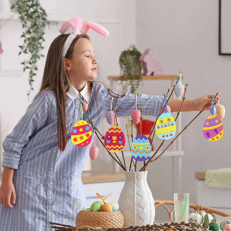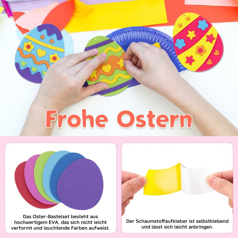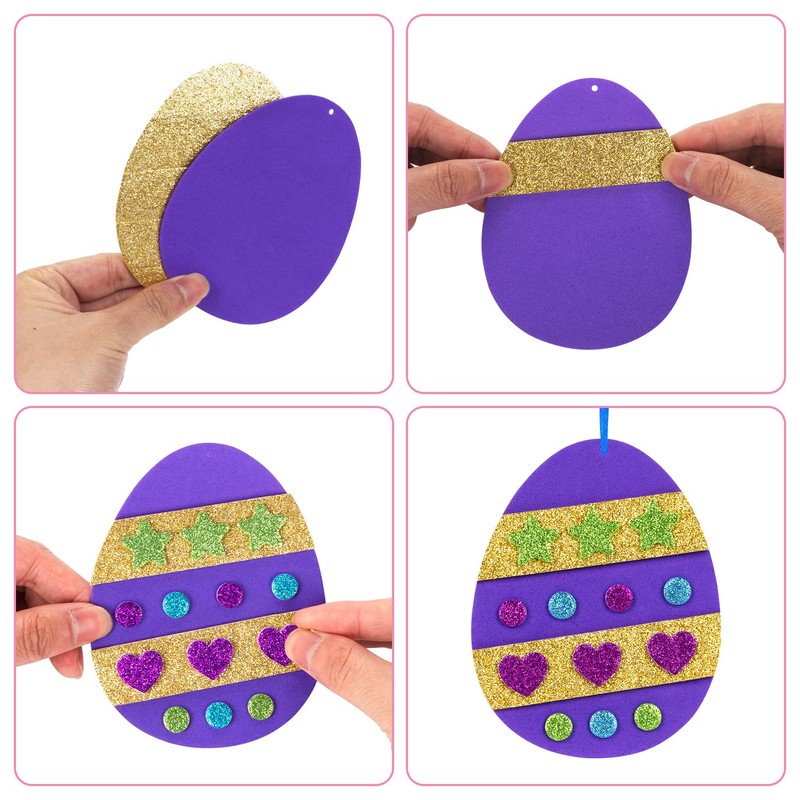 • Easter crafts children: the Easter craft set includes 12 x Easter egg crafts, colourful EVA accessories and colourful rope.