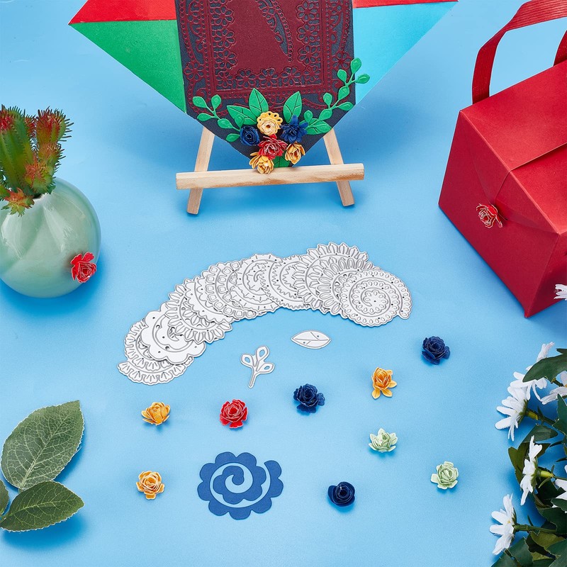 - Package Includes: Total 10 pcs 3D rolled flower cutting dies with additional 2 pcs leaves dies. The flower about 1.8 inch diameter. These quilled flowers dies are great for crafting projects, scrapbooking, tags and card making or anything else your creative mind can think of!