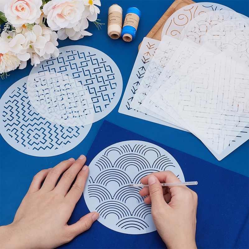 12 Pcs Plastic Sashiko Stencil