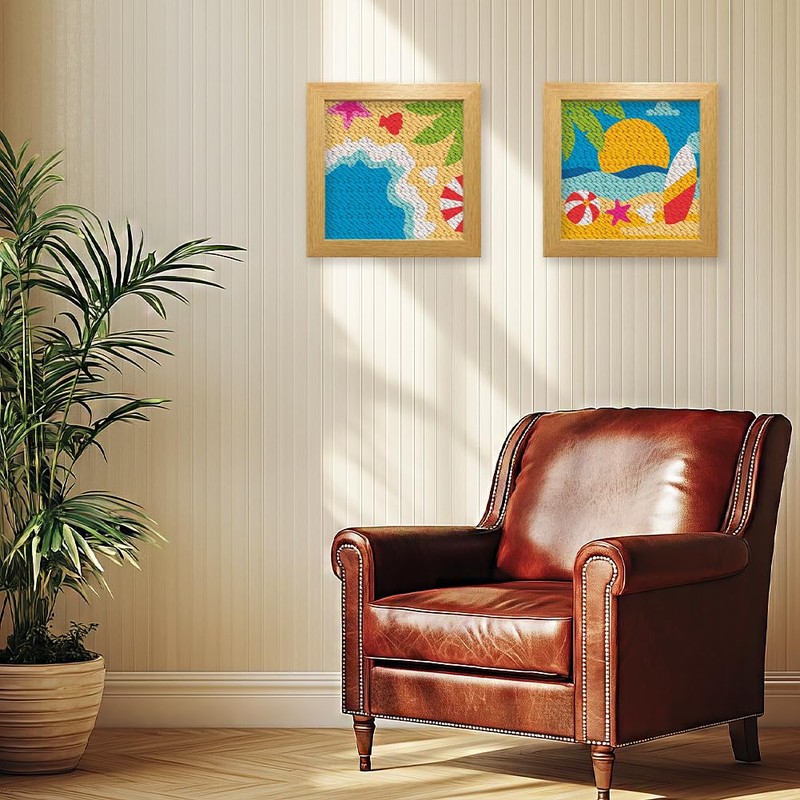 - Package Includes: You will receive 2 Summer Beach theme Punch Needle Sets, each set with 24x24cm frames, pre-printed fabrics, threads, tools and instructions. Enough accessories for your crafting needs!