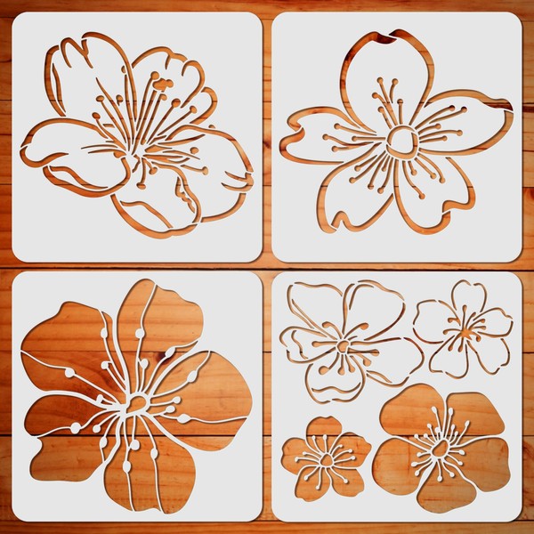 - Package Includes: You will receive 4 pieces of cherry blossom stencils, all measuring approximately 11.8 x 11.8 inches / (30 x 30 cm), with large size, various flower patterns, very suitable for painting on wood, wall, canvas.