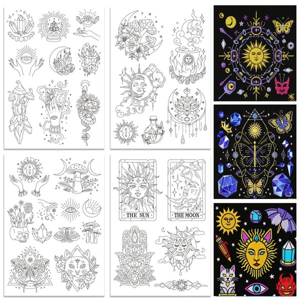 • Package includes: You will get 4 sheets of A4 paper size embroidery pattern stabilisers, magic and divination witchcraft themes, there are 32 kinds of beautiful embroidery patterns, including crystals, magical gestures, sun, moon, cats, mushrooms, devil's eyes, moths, butterflies, etc., suitable for people who love embroidery and divination, come and use your creativity to make one-of-a-kind embroidery works.