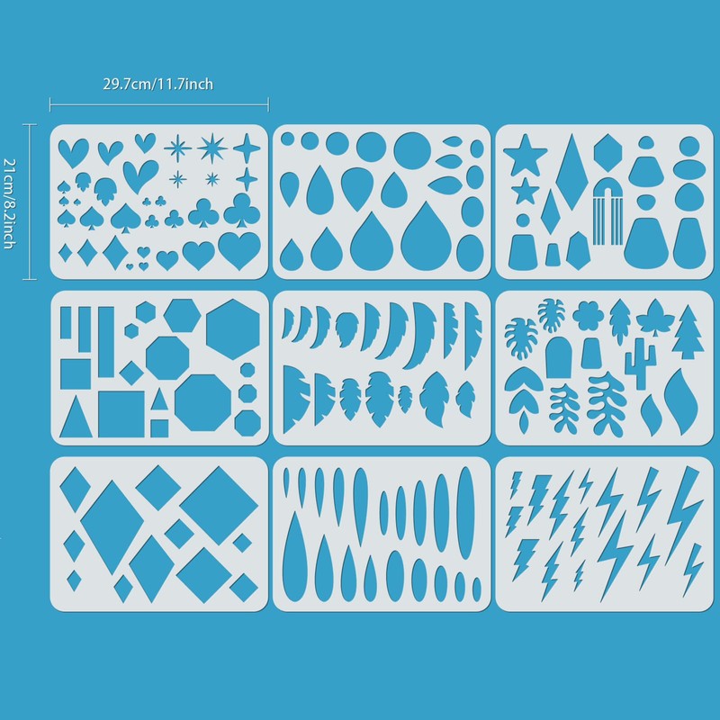- Package Include: 9 pcs of earrings making stencil, contains various earring styles, various styles and sufficient quantity can satisfy your different DIY demands. Each stencil measures approx. 11.7"x8.2"/30x21cm.