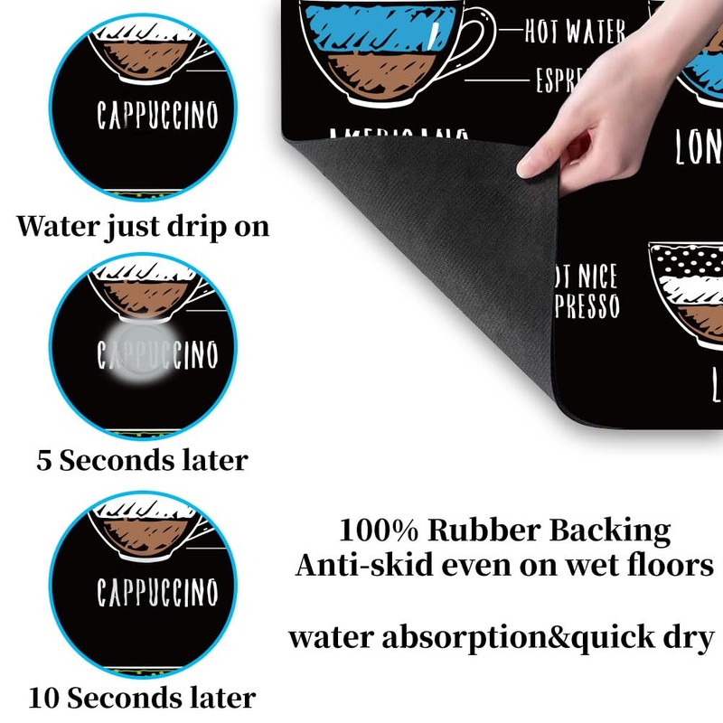 - Wide Application: This drying mat is not only used as a coffee mat. It can also be used as a practical mat for mugs, teacups, glasses, plates or as a decorative item for dining table, bar, coffee table