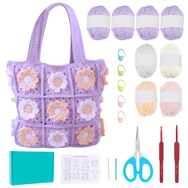 - Complete Crochet Kit: Our kit includes enough colors yarn, crochet hook, blunt needle, scissors, marker clasp and English instruction. It's enough to crochet one fashionable granny square flower bag