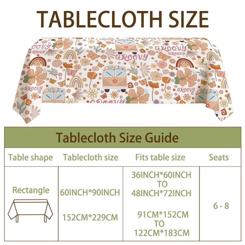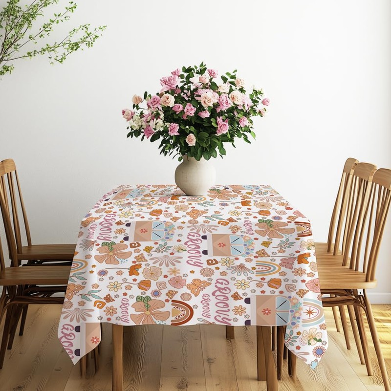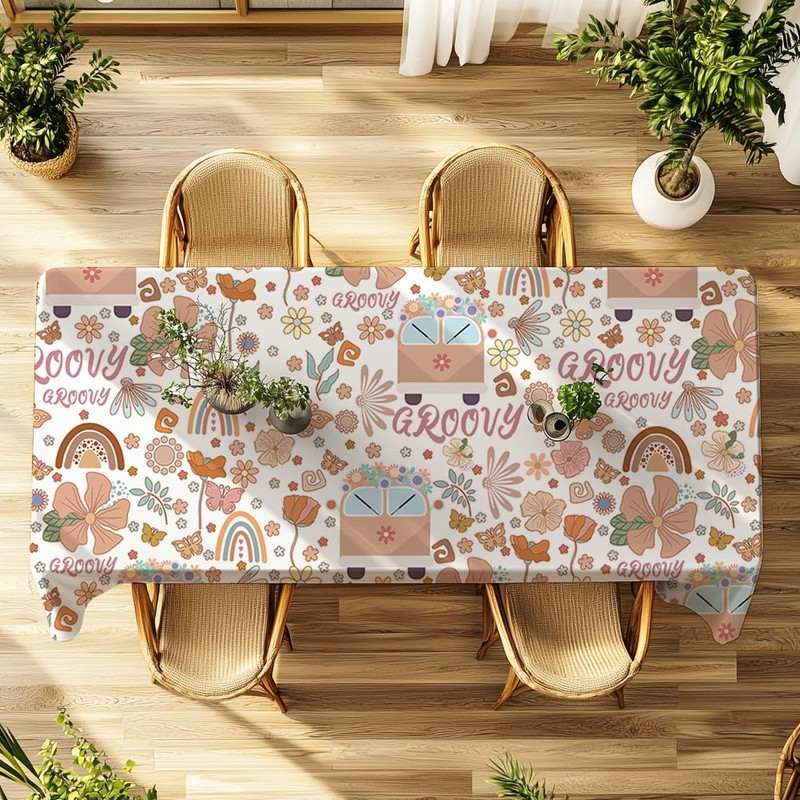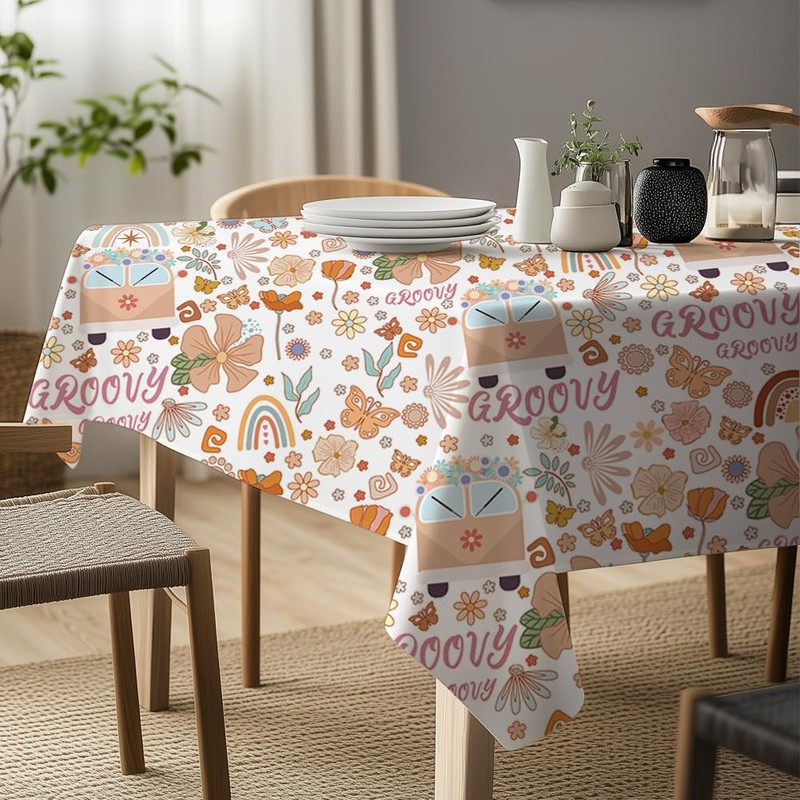- Package Includes: You will receive vintage bohemian tablecloth, size about 90x60inch, beautifully designed, the tablecloth is printed with different shapes of flowers, rainbow, car, leaf, Groovy pattern, the pattern design is rich and varied, dazzling, vintage and beautifully designed can be used with all kinds of cutlery, lunchboxes, napkins, placemats and other decorative items.