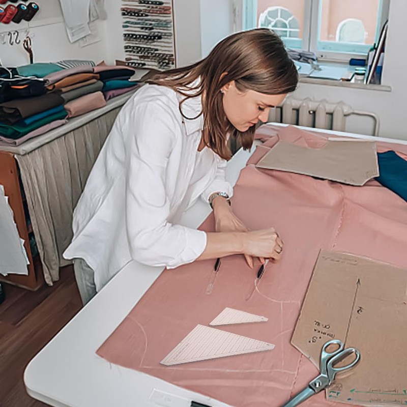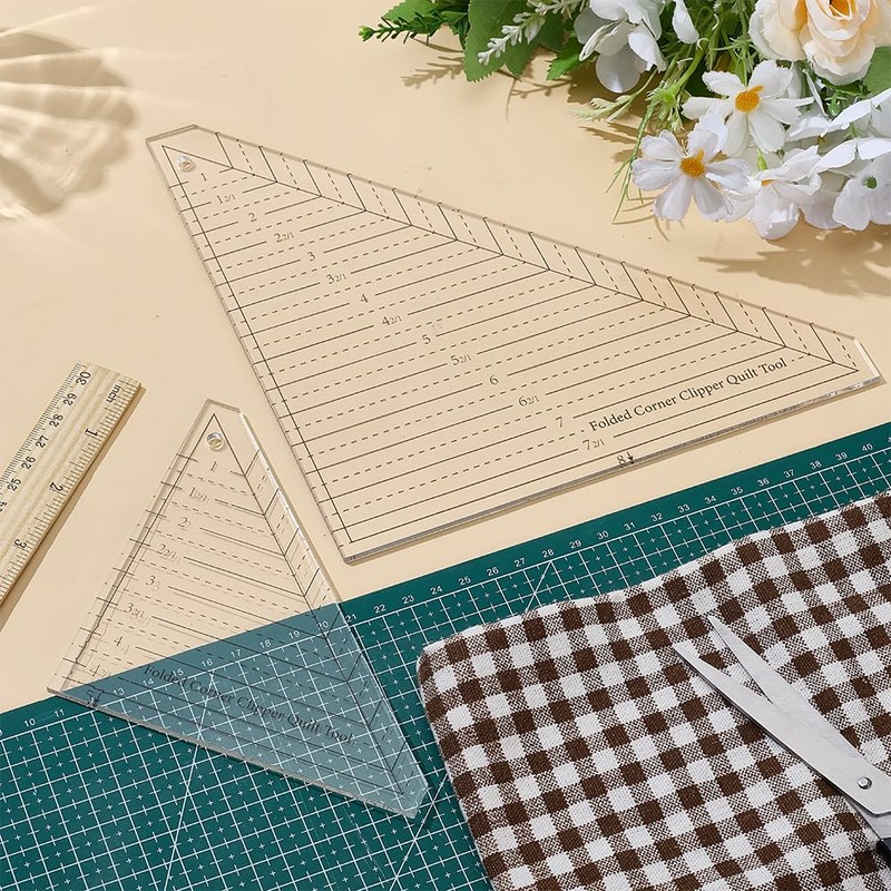 - Set of 2 folded corner ruler: the package contains 2 triangular quilting rulers for quilting, which are helpful for DIY sewing projects in daily life, saving you time and increasing your efficiency