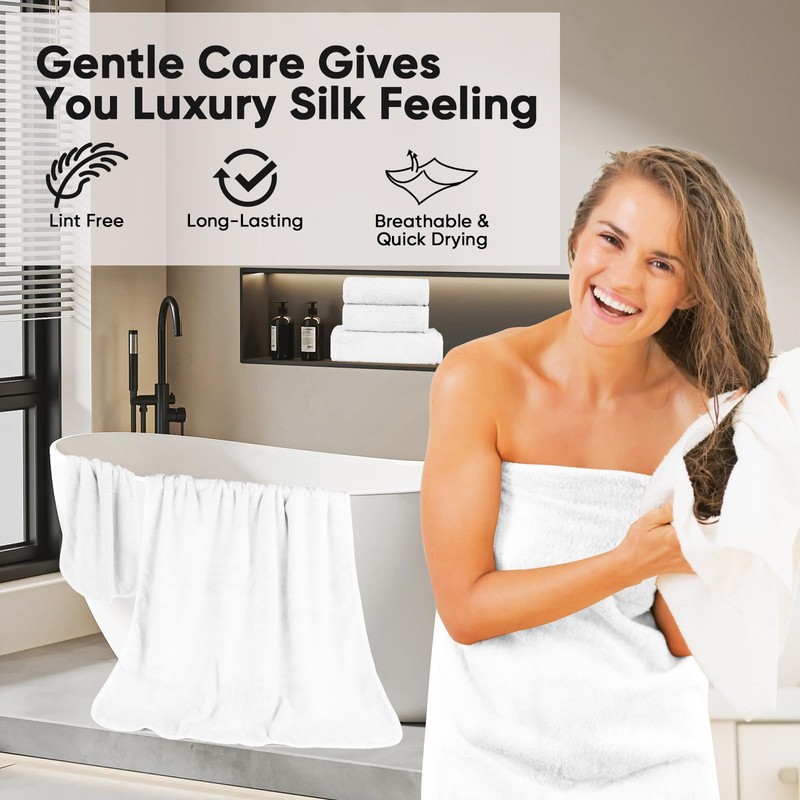 - FOCUS ON DETAILS: Each towel set features exquisite sewing along the edges, ensuring both convenience in daily use and durability during washing. Our microfiber towels and washcloths set embody a perfect blend of elegance and user-friendly design
