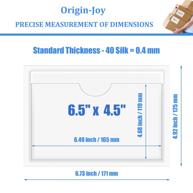 - 【Quality Vinyl Material】Origin-Joy's adhesive index label pockets sleeves are specially customized for customers' common sizes, made from quality vinyl with a self-adhesive backing, the thickness is 40 silk, in keeping lightweight and smooth while having good toughness, not easy to deformation, can be used for a long time.