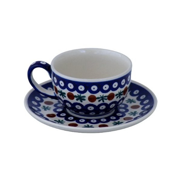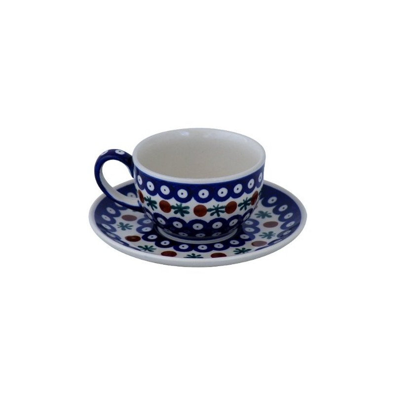 Original Bunzlauer Keramik Classic Coffee and Tea Cup with Saucer 0.21 Litres in Design 41