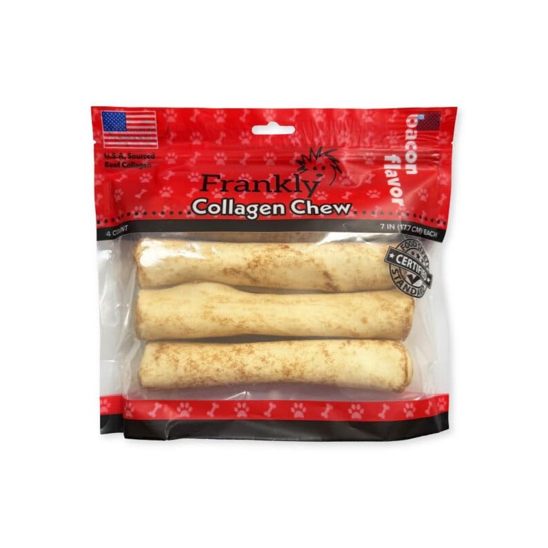 Original Frankly - Bacon Flavored Beef Chew Dog Retriever Rolls - High Protein Collegen Packed - Made in The U.S.A. - 4 Count 7-8" Roll (8753)