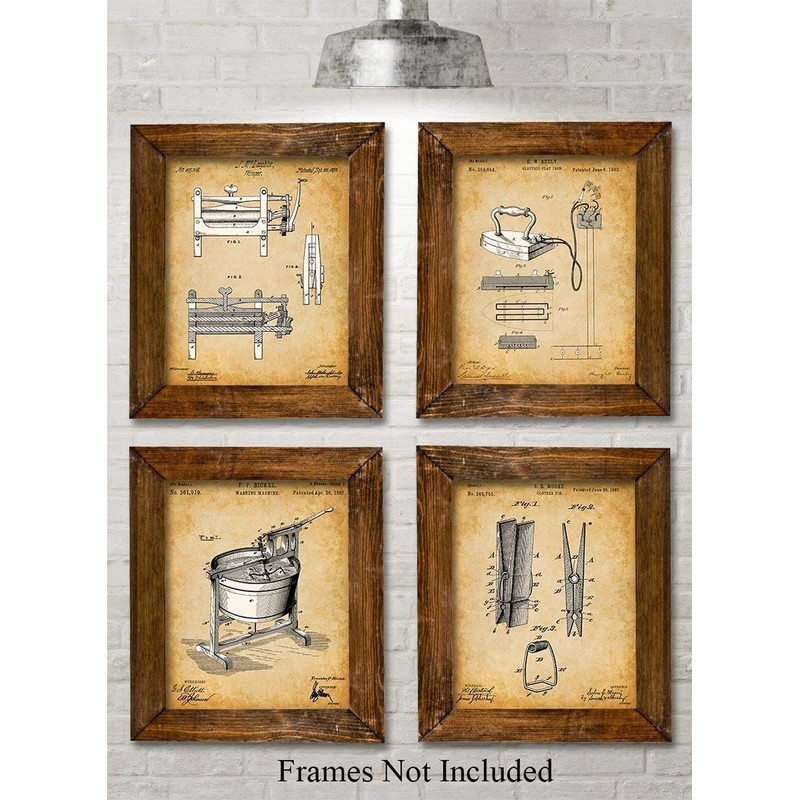 Original Laundry Room Patent Prints - Set of Four Photos (8x10) Unframed - Makes a Great Gift Under $20 for Laundry Room Decor