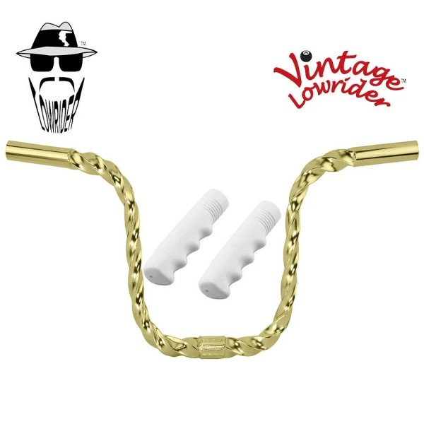 Original Lowrider Handlebar 9" Rise U Square Twist Gold & Solid White Grips